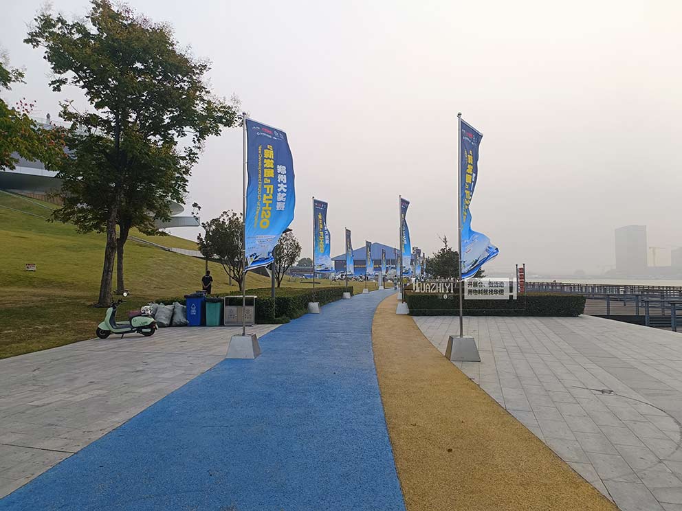 為了確保賽事的順利進行和現(xiàn)場氛圍的營造,鄭州華熠道旗出租公司參與賽事布置。這些道旗不僅色彩鮮艷、圖案精美,而且內(nèi)容緊扣賽事主題,充分展現(xiàn)了摩托艇運動的刺激與激情。