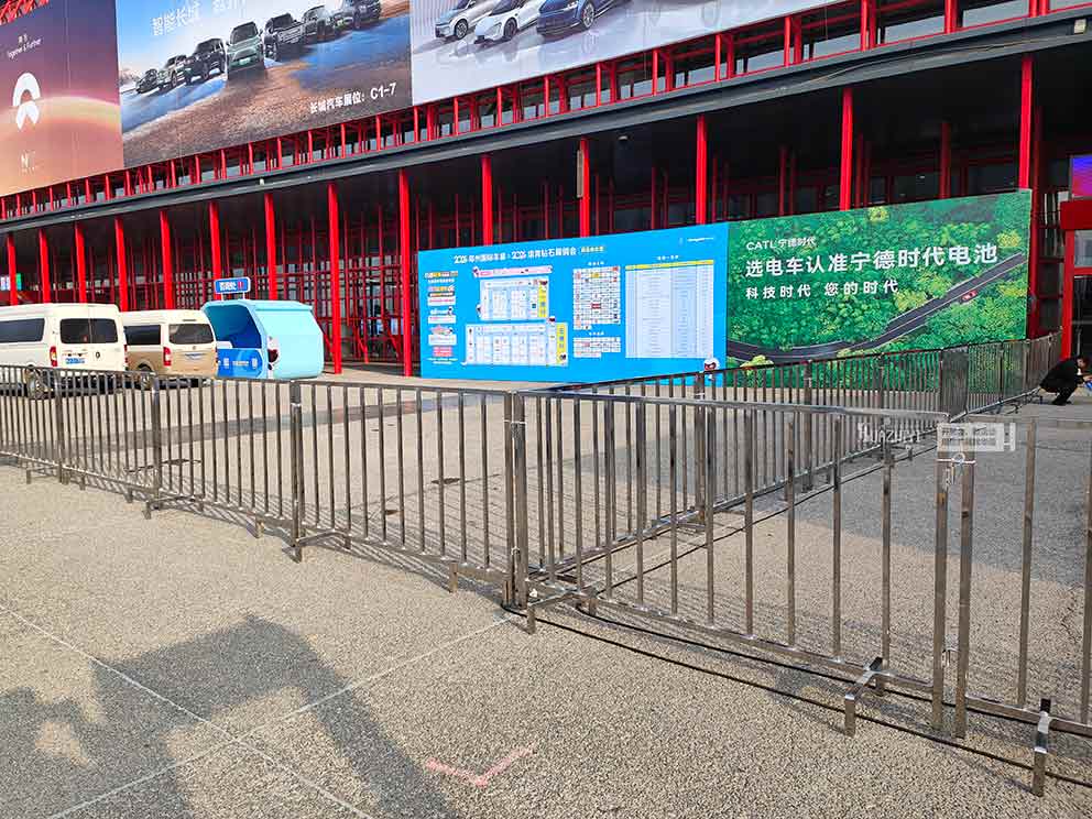 鄭州鐵馬出租公司推出新款鐵馬—方管不銹鋼材質(zhì)。鄭州華熠鐵馬護(hù)欄出租公司助力會(huì)展中心活動(dòng)現(xiàn)場,我們的護(hù)欄已經(jīng)布置到位,今天使用的這款護(hù)欄是方管不銹鋼材質(zhì)的,在太陽的照射下發(fā)出耀眼的光芒,為現(xiàn)場的區(qū)域劃分提供了更加優(yōu)質(zhì)的選擇,更具條理和規(guī)范性。